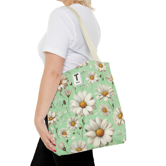Daisy Tote Bag - Floral Summer Green Design